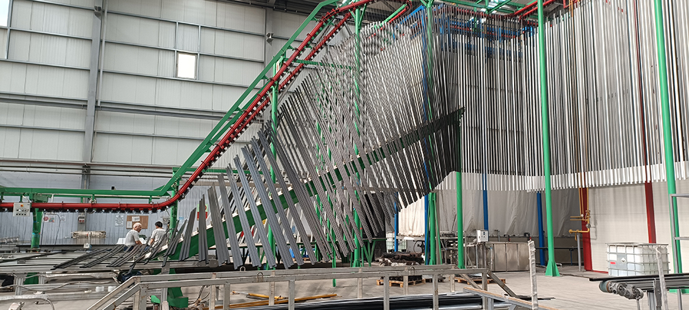 20 adet corona robotik kol ve 2 farklı boya kabini ile tesisimiz yıllık 15.000 ton alüminyum profilleri toz boya ile kaplama kabiliyetindedir.
